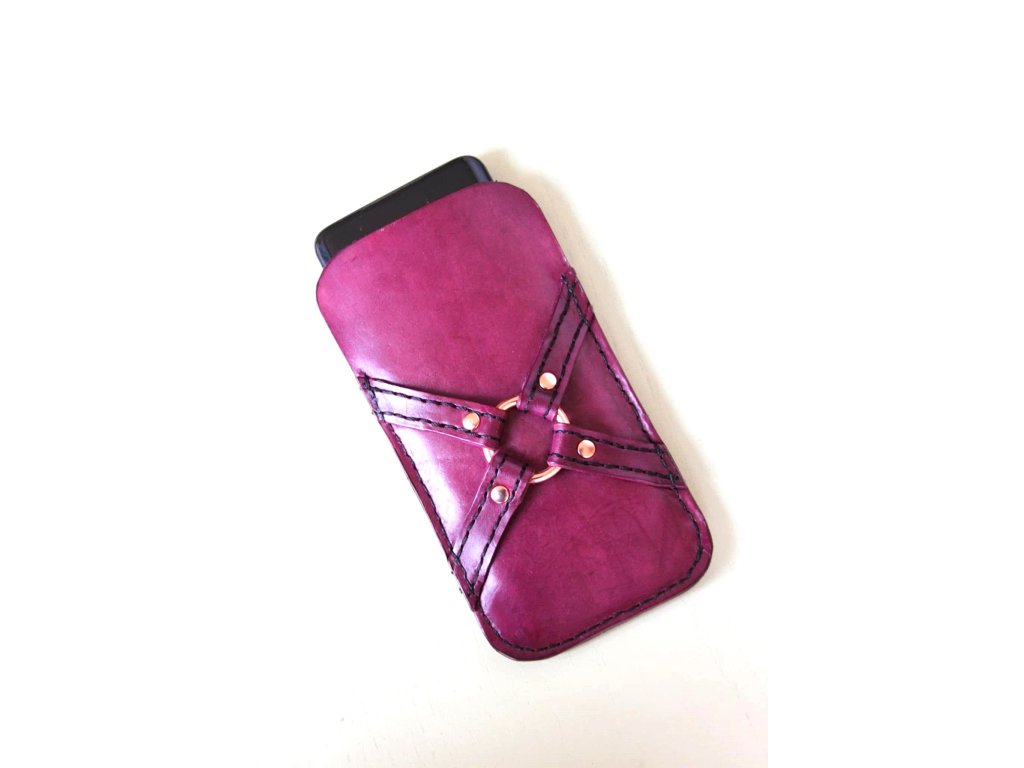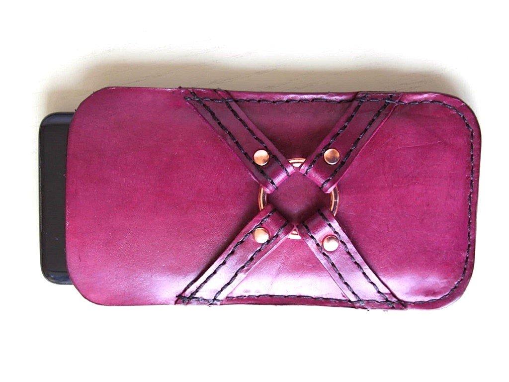 Ručně šité pouzdro na mobil z kvalitní hovězí usně o síle 1,5–2 mm. Design s charakteristickým křížením řemínků a kovovým kroužkem je inspirovaný stylem harness – praktické, odvážné a jedinečné zároveň. Každý kus je vyráběn ručně, s důrazem na detail, funkčnost a estetiku.